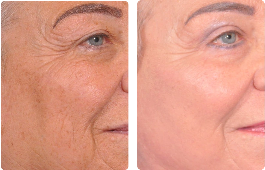 This patient sought consultation for correction of skin wrinkles and dark spots. This photo aging changes were treated with fractional CO2 and picosecond lasers.